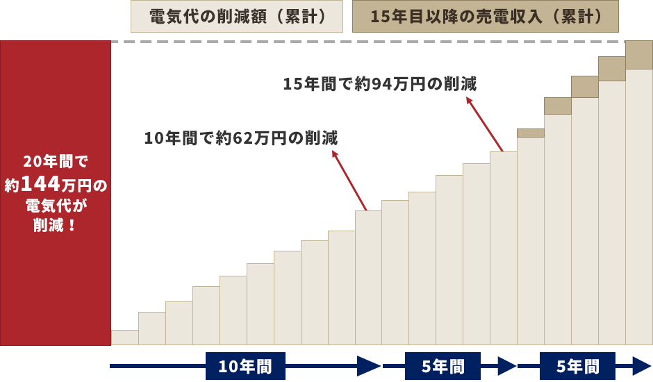 | 電気代の削減 | 削減額ゼロ | 20年間で約144万円! |